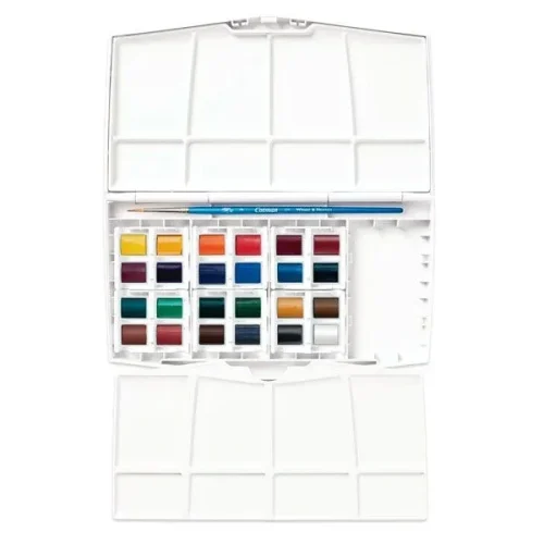 ست آبرنگ کاتمن وینزور با قرص های کوچک. ایجاد طیف بی نظیر رنگ ها که گسترده ترین و متعادل ترین انتخاب رنگدانه ها را با بیشترین ماندگاری ممکن تولید شده است. درخشندگی، شفافیت و خلوص رنگ بالا. تولید رنگ های روشن تر، شفاف تر و پایدارتر با استاندارهای بالا. در بسته بندی پلاستیکی با درب های خانه بندی شده جهت استفاده به عنوان پالت. ست ۲۵ تکه شامل ۲۴ رنگ به همراه یک قلمو آبرنگ موجود است. محصول فرانسه