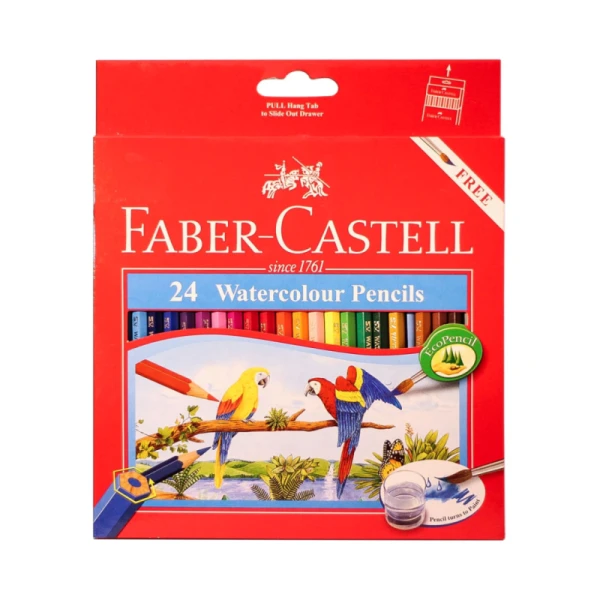 ست مداد آبرنگی ۲۴ رنگ فابرکاستل جعبه مقوایی(طرح طوطی)