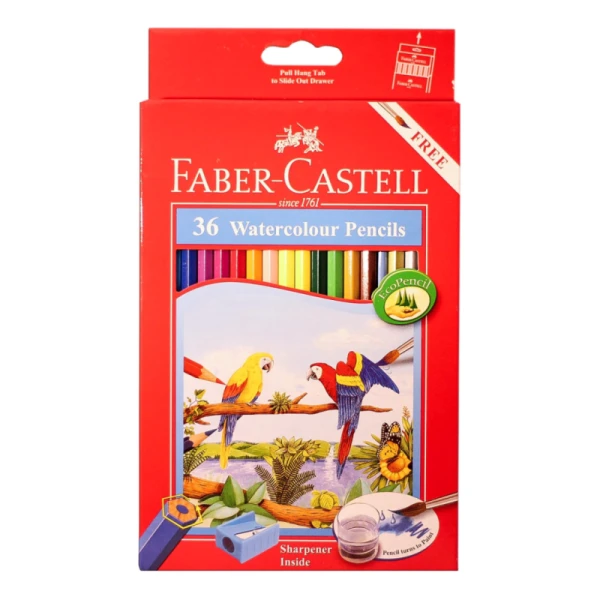 ست مداد آبرنگی 36 رنگ فابرکاستل جعبه مقوایی(طرح طوطی)